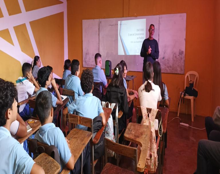 Continuan los talleres y actividades alusivas a la semana de la juventud hoy con este taller nos ofrecen tanto a los estudiantes como a los docentes herramientas para aprender hablar bien en público y exponer con éxitos.