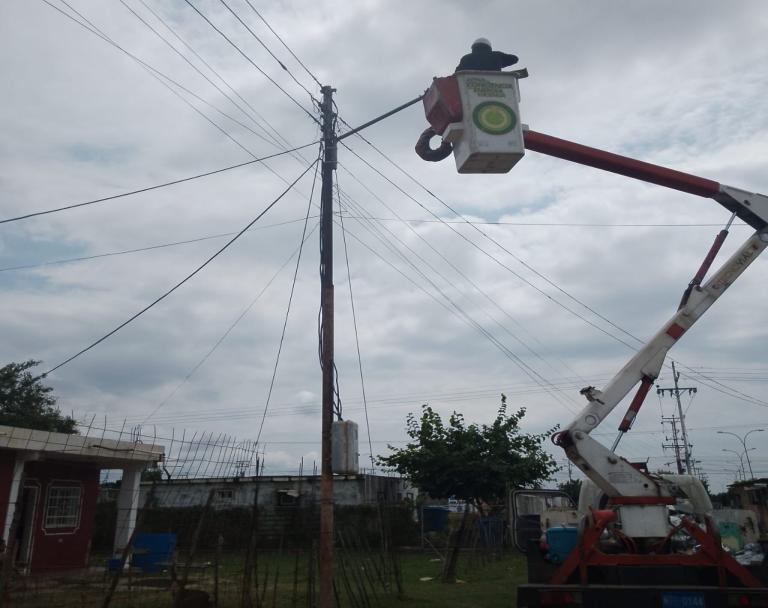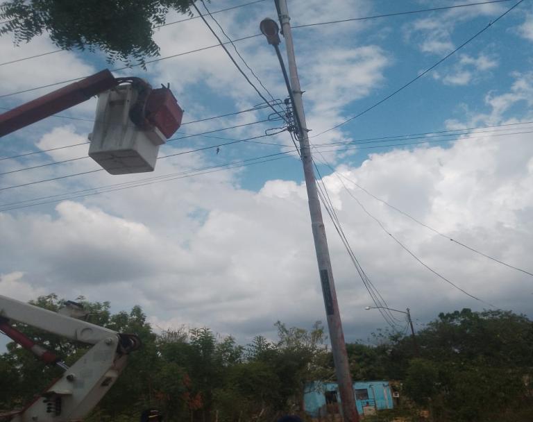 Personal de la alcaldía de trabajadores en apoyo a las comunidades emmanuel H7, villa Nueva H5-H7, villa Nueva II en la colocación de las luminarias del proyecto ganador del noviembre del 2025