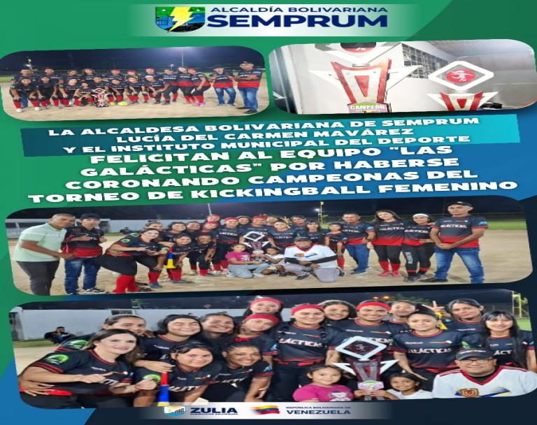 Felicitaciones Campeonas! Desde la Alcaldía Bolivariana de Semprum conjuntamente con el Instituto Municipal de Deportes, extendemos nuestras más sinceras felicitaciones al Equipo Campeón de Kickingball Femenino "Las Galácticas" quienes se coronaron como las Campeonas en el Torneo homenaje a Nidian Estupiñan.