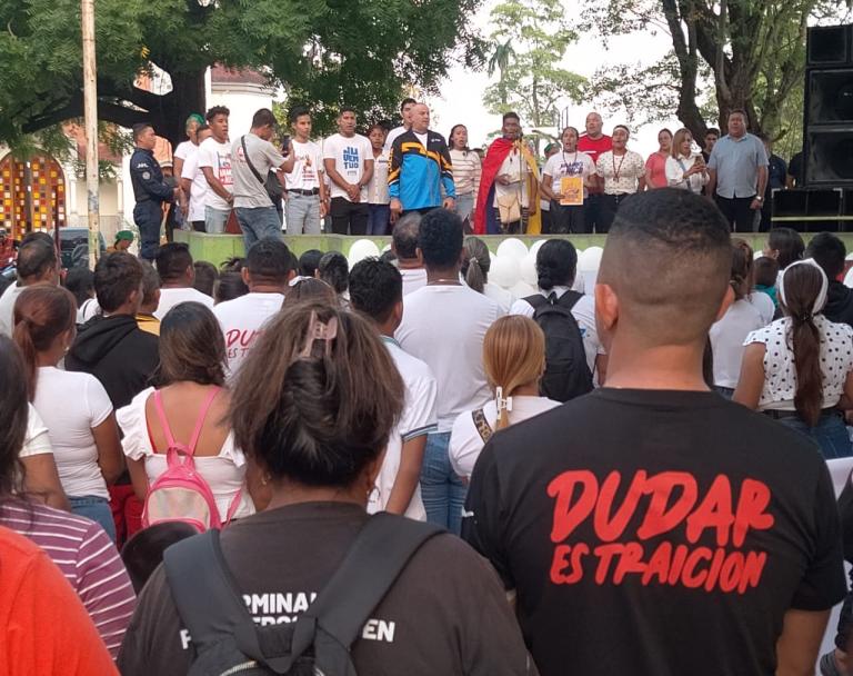AQUI DESDE LA PLAZA BOLIVAR DE NUESTRO MUNICIPIO MACHIQUES JUNTO CON LA JUVENTUD Y EL ALCALDE BOLIVARIANO MARCOS PERROTA EN APOYO A NUESTRO PRESIDENTE NICOLAS MADURO Y LA PRIMERA DAMA CILIA FLORES.