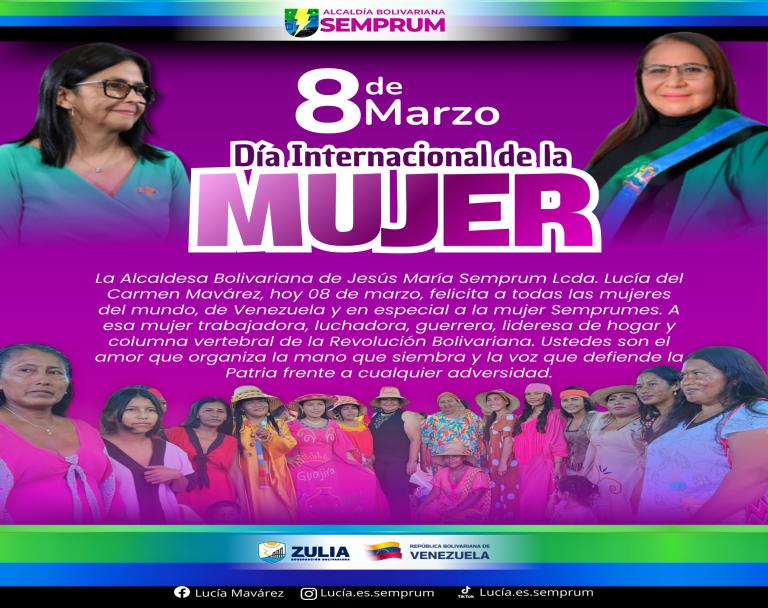 Desde el municipio de Sor María hoy nos sentimos muy orgullosos de la mujer venezolana ya que es la mujer guerrera emprendedora la madre que quiere esta patria como si fuera sus hijos donde siempre el amor La Paz la armonía siempre estarán por encima de cualquier cosa en la adversidad siempre reinará en nuestro municipio el amor por el pueblo venceremos