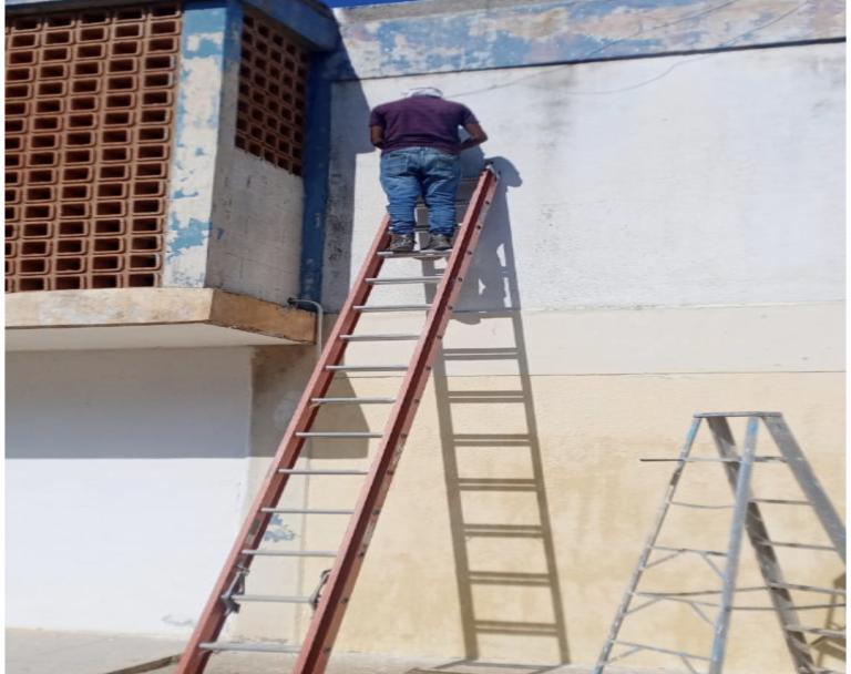 Avanzando con la pintura a la fachada del Liceo Ernesto Flores Fuenmayor.