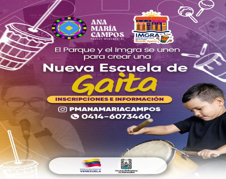 Maracaibo, 3 de abril de 2026.- En un esfuerzo conjunto por fortalecer nuestra identidad cultural y brindar espacios de formación artística a la juventud zuliana, el Parque Monumental Ana María Campos y el Instituto Municipal de la Gaita Ricardo Aguirre (IMGRA) anuncian formalmente su alianza para la apertura de una nueva escuela de gaita en sus instalaciones.