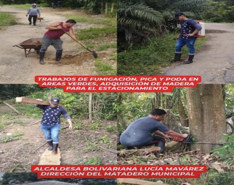 Hoy 08 de Abril Como nos orientó la Alcaldesa Lucía Mavárez, desde la Dirección del Matadero Municipal seguimos trabajando, fumigación de las áreas verdes y tala de árbol para la adquisición de madera con la finalidad de hacer el estacionamiento de las instalaciones de la Sala de Matanzas, compromiso adquirido por nuestra Jefa Política en Campaña como lo fue la recuperación y puesta en funcionamiento de todas las Áreas de la Alcaldía Bolivariana.