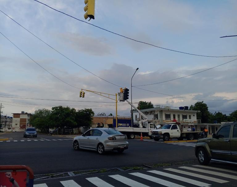 Durante dos jornadas de trabajo continuo, las cuadrillas desmontaron las estructuras deterioradas, instalaron las nuevas caras, reemplazaron componentes y modernizaron el sistema eléctrico interno y externo, sustituyeron las luminarias dañadas, pintura de los semáforos y brocales, demarcación de los pasos peatonales y señalización, “ha sido un trabajo de dos dias de trabajo y ya estamos culminando, todavía faltan unos detalles, pero ya estamos a punto de poner en funcionamiento el semáforo en esta zona residencial con alto flujo vehicular”, refirió Morón.