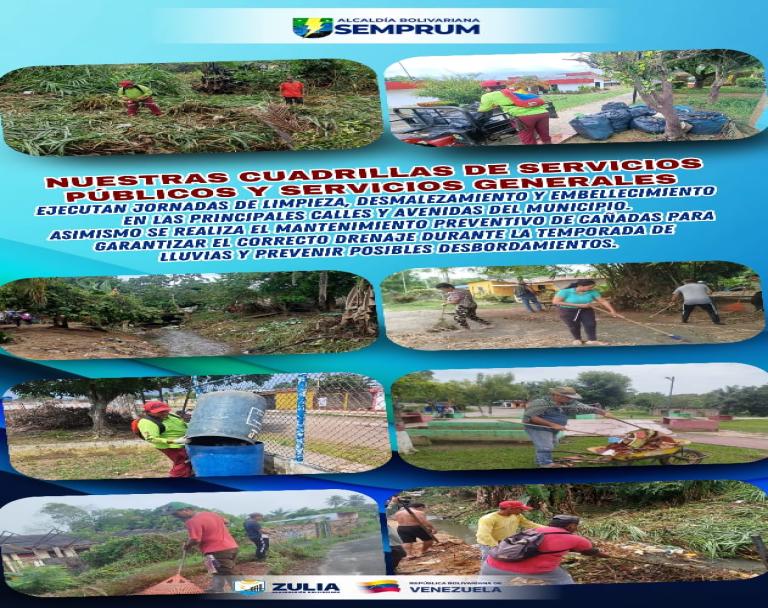 Bajo las orientaciones de la Alcaldesa Bolivariana de Semprum, Lcda. Lucía del Carmen Mavárez, las cuadrillas de Servicios Generales y Servicios Públicos de la Alcaldía, se encuentran desplegadas en las dos parroquias del municipio.