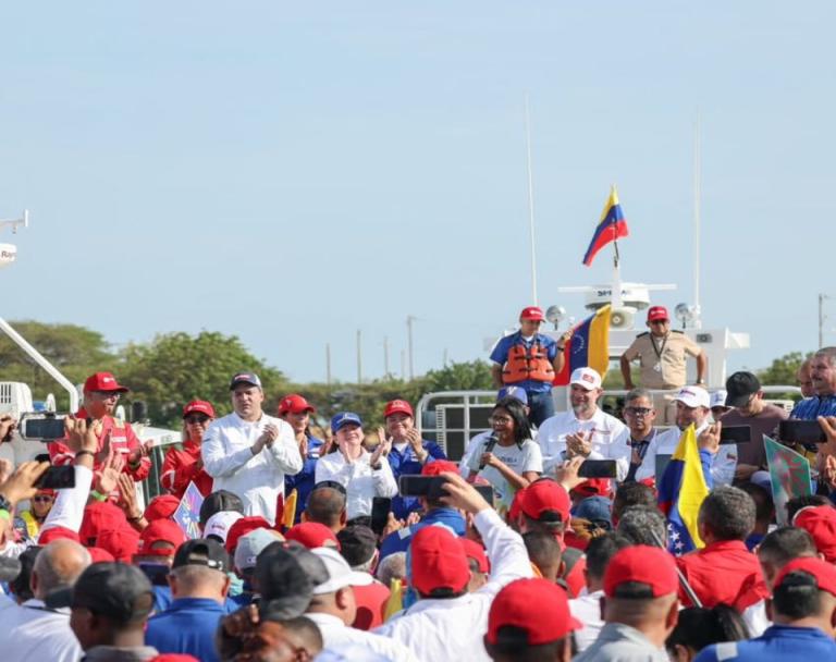 EL DOMINGO 19 DE ABRIL. DESDE EL MUELLE DE PEQUIVEN, LA PRESIDENTA (E) DE LA REPÚBLICA BOLIVARIANA DE VENEZUELA, DELCY RODRÍGUEZ, LIDERÓ UN ENCUENTRO CON LA CLASE OBRERA PETROLERA Y PETROQUÍMICA, EN EL MARCO DE LA GRAN PEREGRINACIÓN NACIONAL Y LA CONMEMORACIÓN DEL ESPÍRITU LIBERTARIO DEL 19 DE ABRIL.